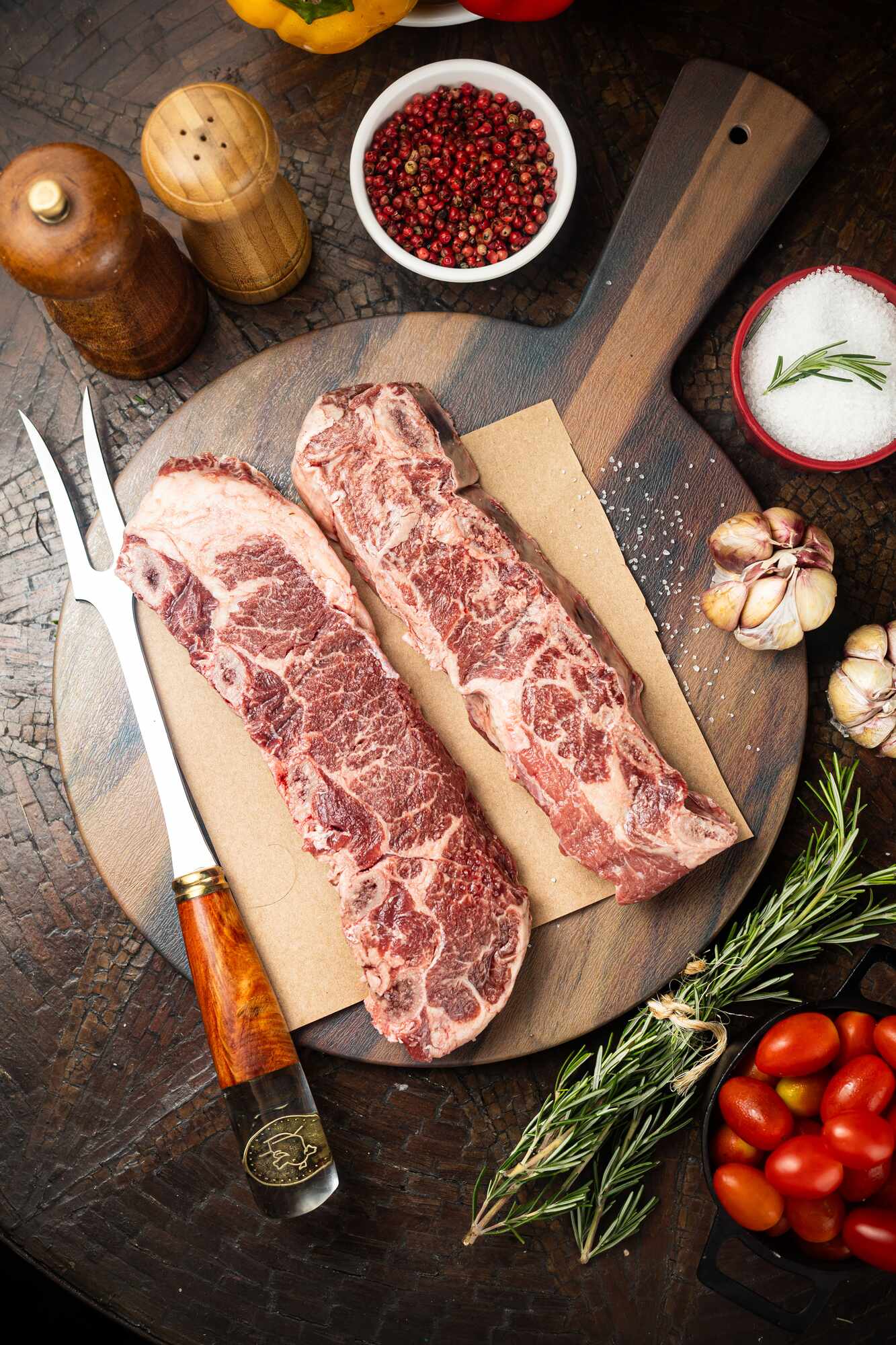 O Denver Steak Angus é um corte nobre, retirado da parte dianteira da costela, com marmoreio que garante suculência e sabor intenso.