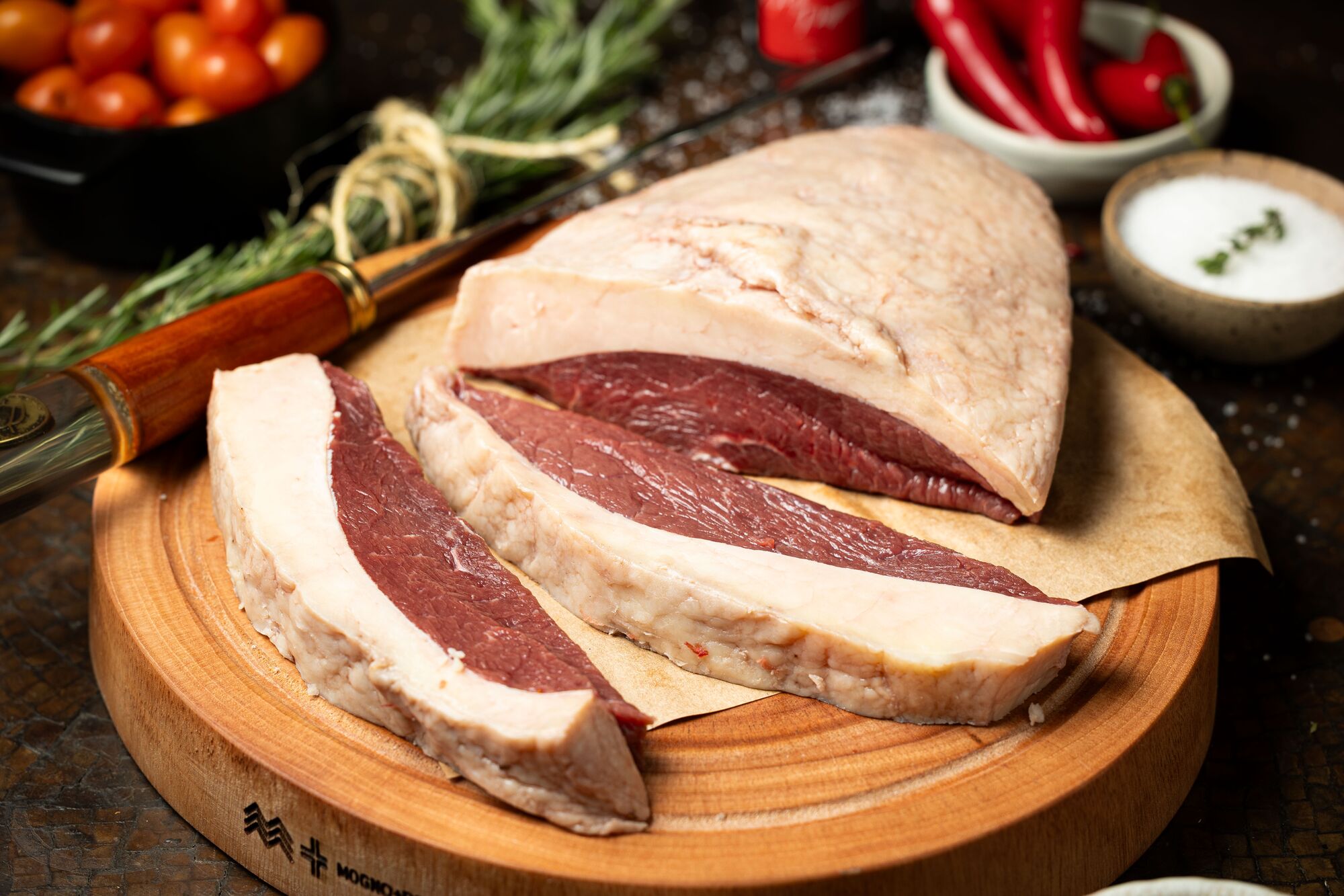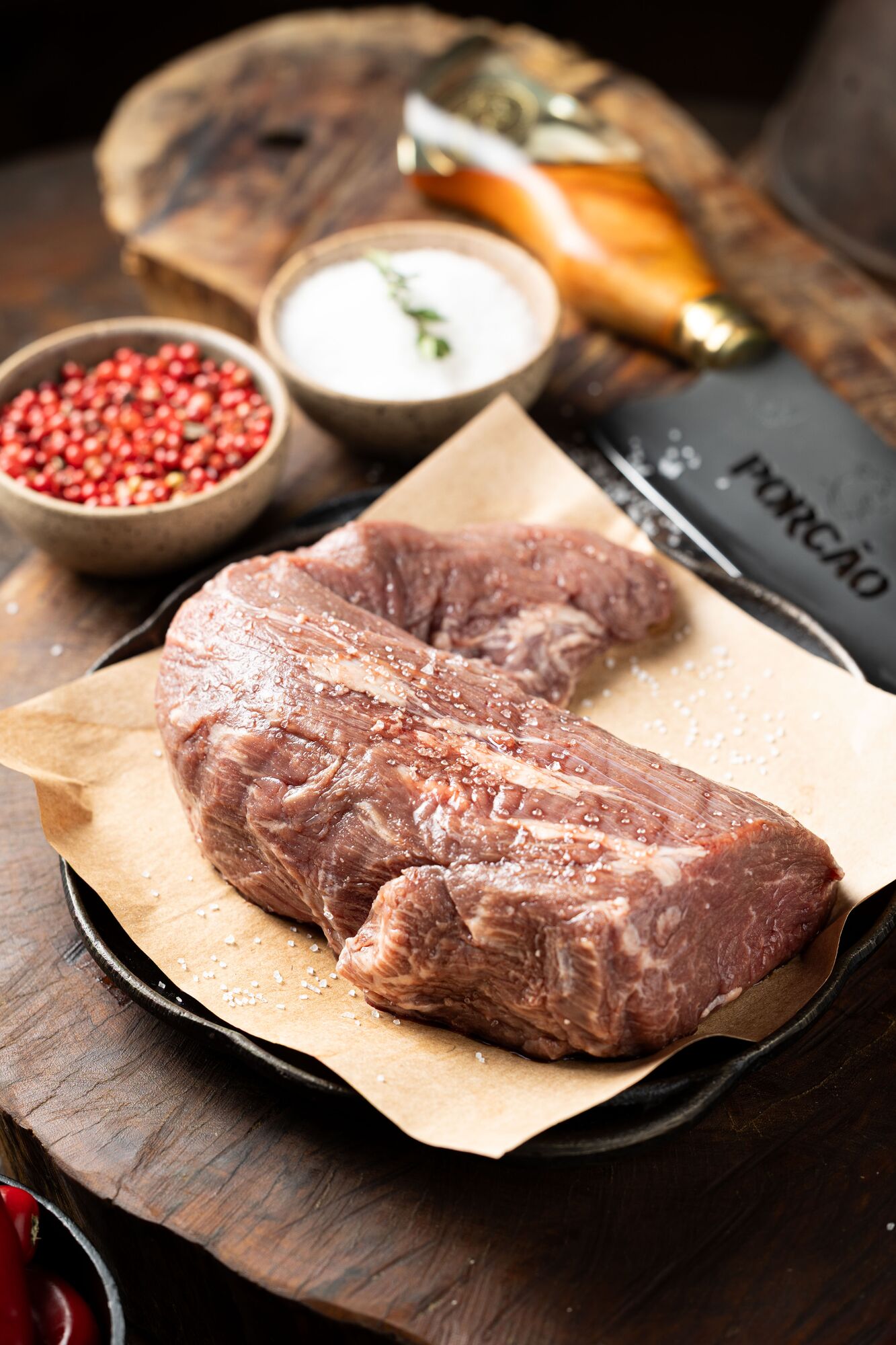 A Bananinha Angus é um corte macio e saboroso, retirado da parte traseira da alcatra, com marmoreio que garante suculência e sabor marcante.