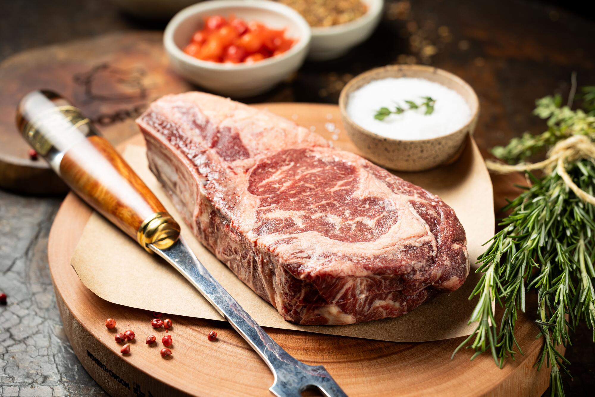 O Prime Rib Angus é um corte imponente e suculento, retirado da parte nobre da costela, que combina marmoreio generoso com sabor intenso e marcante.