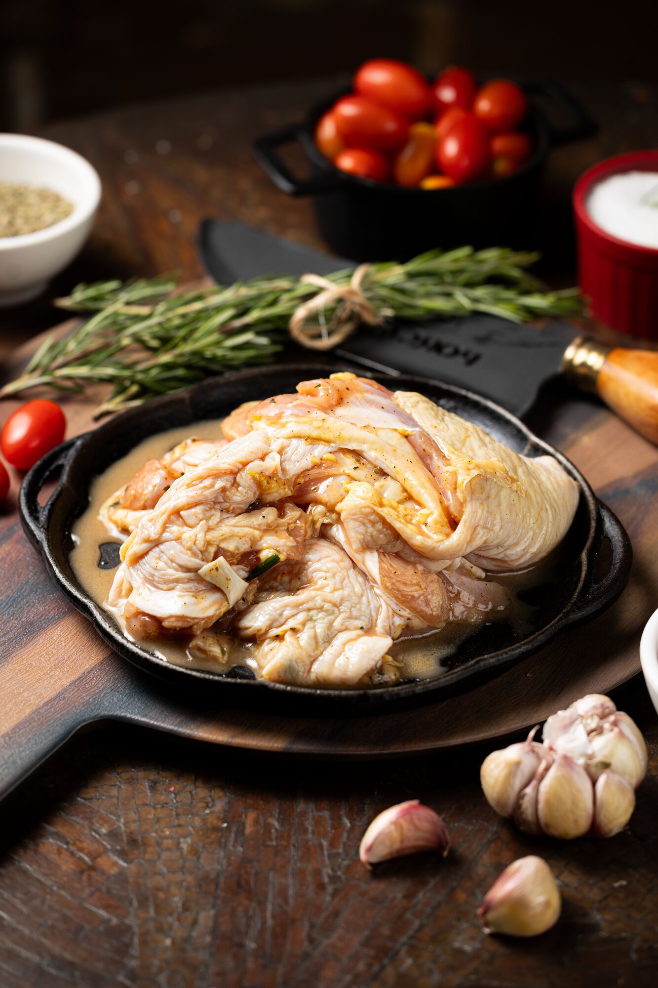 A Sobrecoxa Marinada é suculenta, macia e envolta em tempero especial que realça todo o sabor da carne.